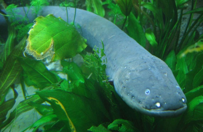 Как следует из названия, главное оружие этой рыбы — электрический разряд, от 300 до 650 вольт. Этого достаточно, чтобы вызвать сильную боль, а иногда и смерть. Средний вес — 20 кг. Длина — до 3-х метров. Обитает в водоемах Латинской Америки, Бразилии, Венесуэле, Гайане, Перу.