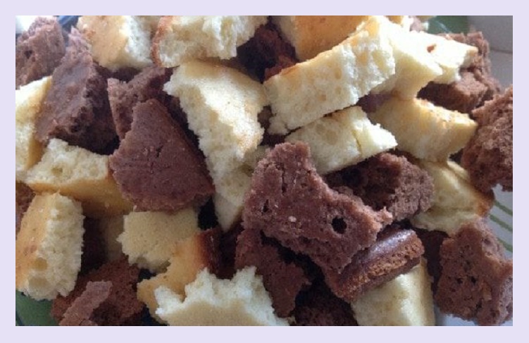 - Сложить квадратики в тарелку или форму. Каждый слой промазать кремом.