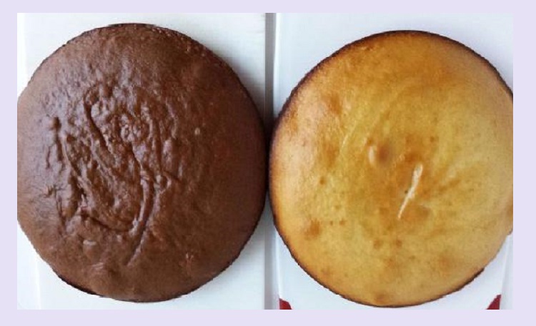 - Для торта нужно выпечь два абсолютно разных по цвету бисквитных коржа. Один белого, второй темного цвета.