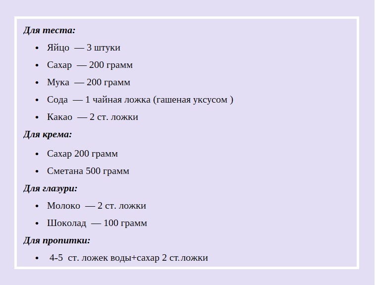 Рецептур у этого торта множество. Для приготовления коржей можно использовать сметану, кефир, сгущенное молоко. Предлагаем вам классический рецепт, сочетание продуктов в котором можно назвать идеальным.