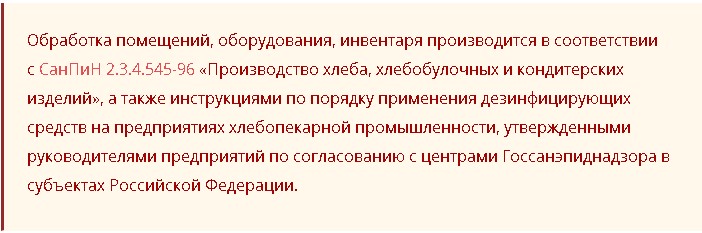 Для специалистов мукомольных, хлебоприемных и хлебопекарных предприятий существует специальная инструкция, согласно которой, стеллажи обрабатываются хлорной известью, из которой делают 3% раствор. После чего, стеллажи и полки промывают горячей, затем, холодной водой и насухо вытирают. После высыхания на них можно размещать готовую хлебопекарную выпечку.