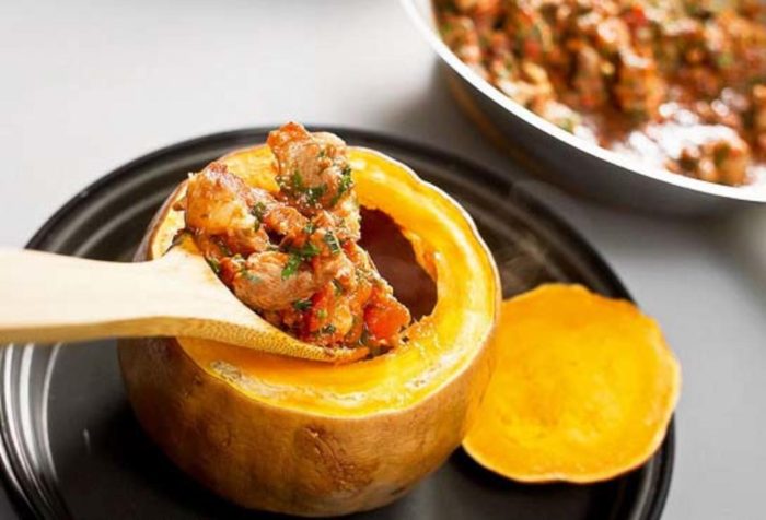 Тыква необычайно хорошо сочетается и усваивается с мясом. Причем это не только вкусное блюдо, но и чрезвычайно аппетитное, а на столе смотрится — глаз не оторвать! Предлагаем два простых, но вкусных тыквенных блюда с мясом.