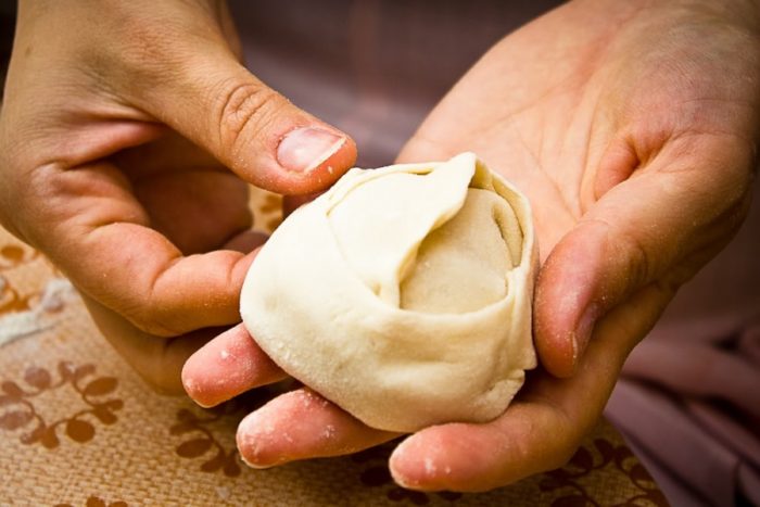 - замешивают тесто для мантов