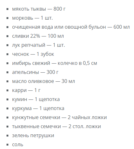 Суп-пюре из тыквы с апельсиновым соком и сливками