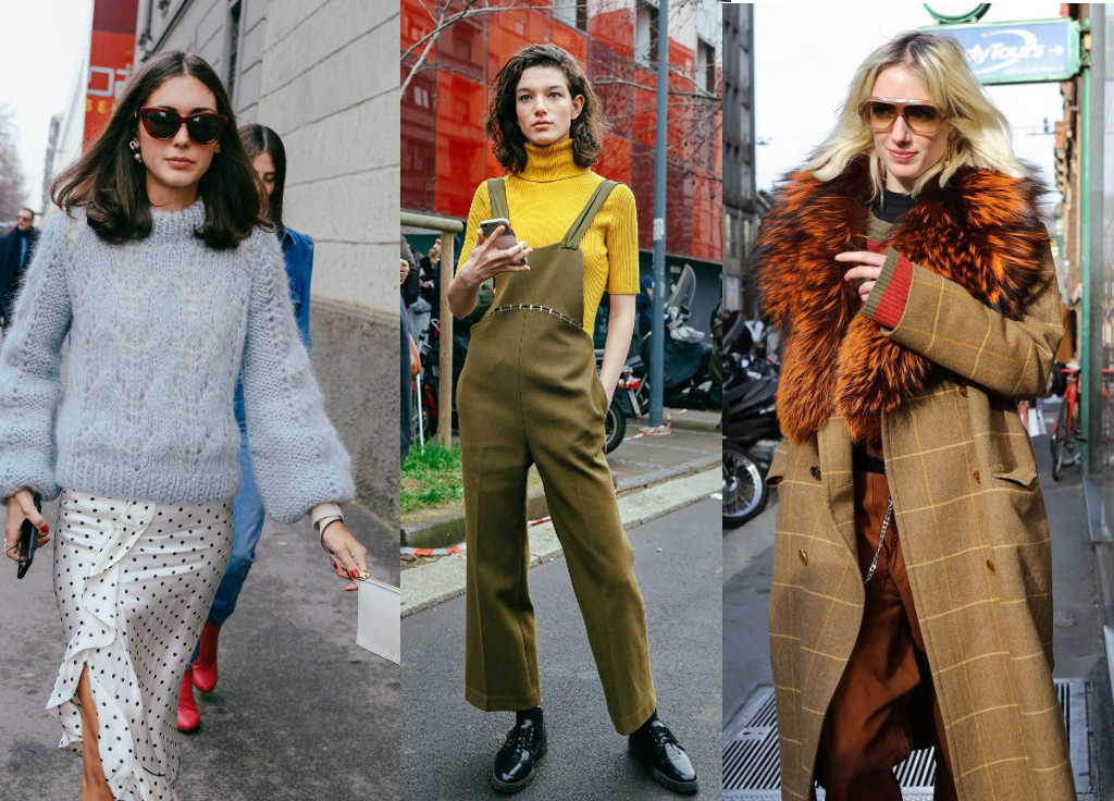 В тренде — нетривиальные оттенки (лиловый, бледно-лимонный, лаймовый, насыщенный оливковый и глубокий фиолетовый) и их сочетания, выразительные цветочные и абстрактные принты. Однако монохромные и лаконичные решения в черном, темно-синем, бежевом и коричневом цветах в зимних образах street style также уместны.