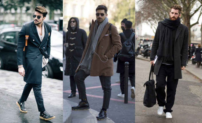 Оптимальный выбор одежды для осени, ранней весны и теплых зимних дней — стильное однобортное полупальто дафклот с капюшоном, кожаный бомбер, куртка-бушлат, двубортное пальто прямого свободного кроя из шерстяной ткани «в елочку». В тренде — черный, темно-синий, глубокий бутылочно-зеленый, а также все оттенки темно-бежевого и темно-серого. Насыщенные, а тем более яркие, расцветки верхней одежды уместны разве что в молодежных луках street style.