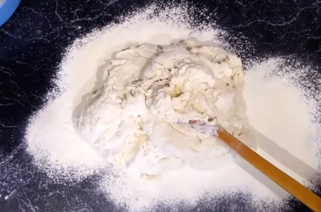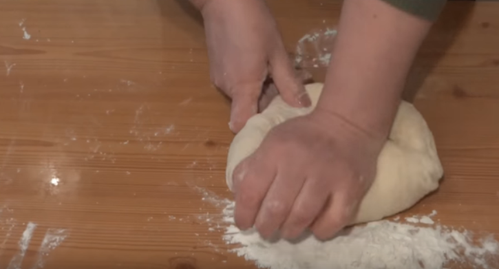 Чтобы легче было вымешивать, разрежьте тесто на несколько частей.