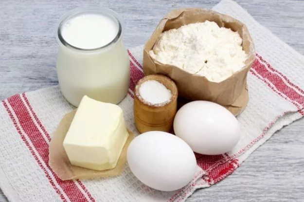 В классическом рецепте всегда используют муку, жидкость, яйца, жир.