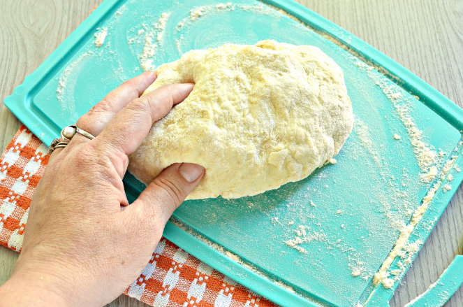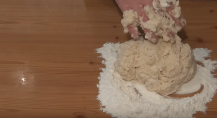Далее положить на поверхность (стол, доску) и вымешивать руками.