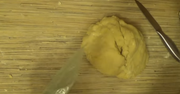 В конце замеса соедините все части и оберните целлофановой пленкой. Оставьте на пол часа.