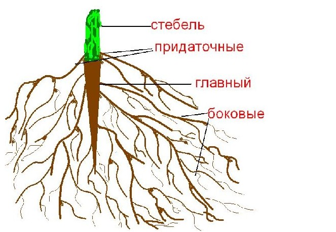 Корни делят по типам — придаточные, боковые и главный, который всегда один и вырастает из семенного зародыша. Придаточные растут из стебля, а боковые от главного корня.
