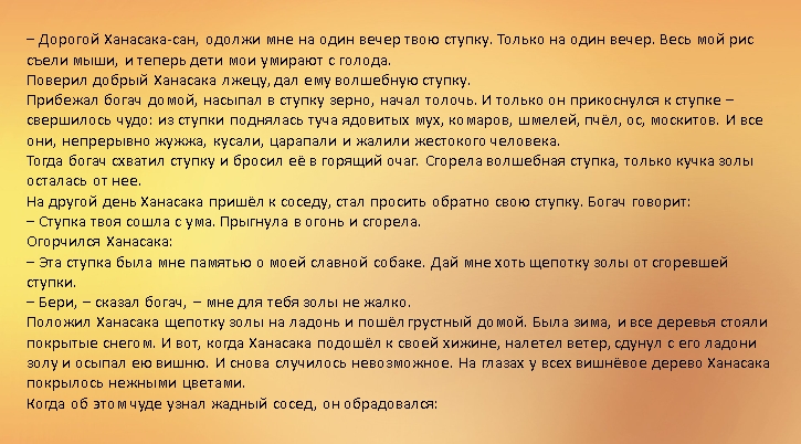 Дело было зимой и на улице было скользко. Шли из школы ученик Петя и ученица Таня, а впереди них — старушка. Шла она шла, поскользнулась и упала.