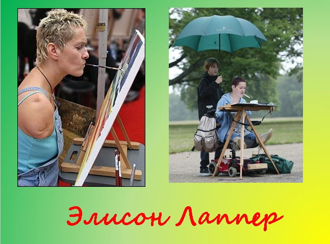 Произвели ли они на вас впечатление? Вы знаете автора картин? Это Элисон Лаппер, она родилась без рук.
