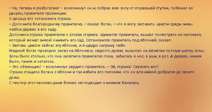 - А вы знаете, что дела тоже должны быть добрыми? Пословица гласит: Не одежда красит человека, а его добрые дела.