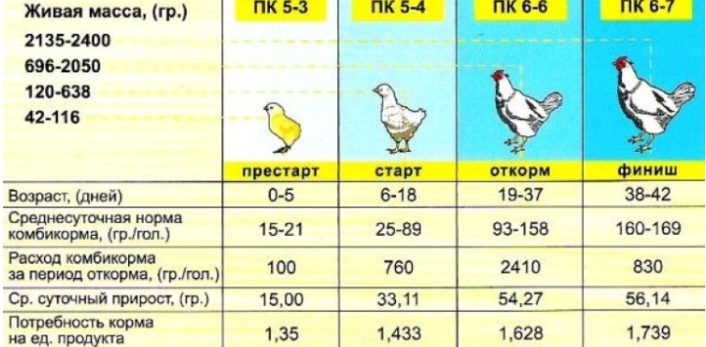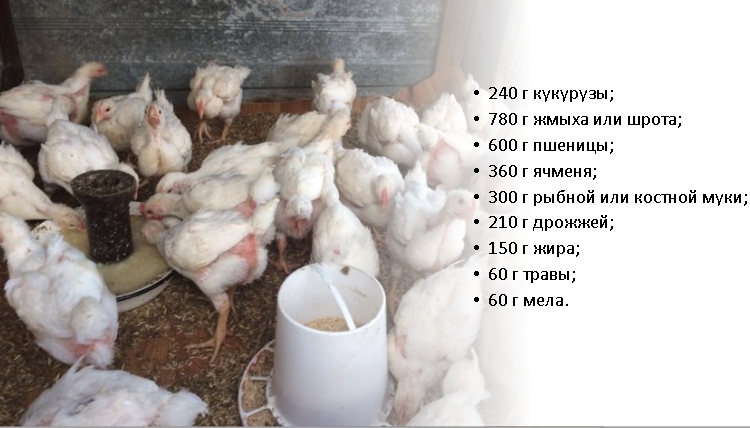 От одного месяца до убоя, норма 160 грамм на одну курицу