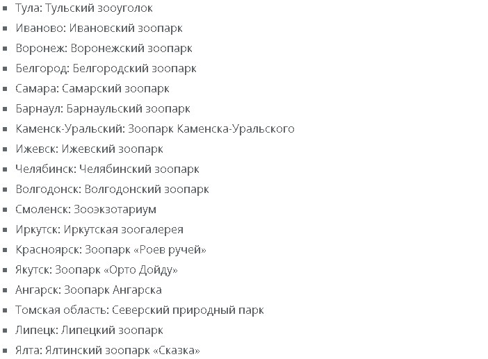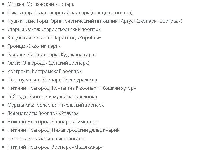 Вряд ли найдется человек, который, хоть раз в жизни не был в зоопарке. Сегодня мы расскажем о зоопарках нашей страны и о том, какие животные в них содержатся.