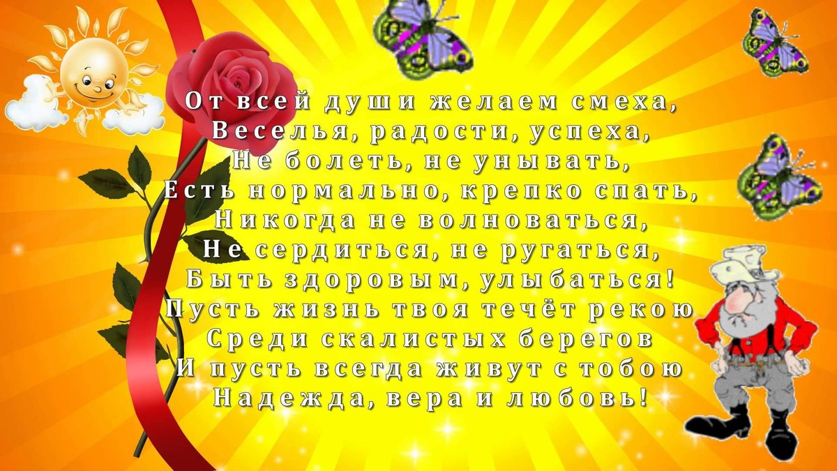 Ни один праздник не обходится без веселых конкурсов, тостов и, конечно, поздравлений. Просто так вручать подарок слишком обыденно, нужно обязательно что-то сказать, а делать это надо с юморком и иронией. Поэтому, предлагаем воспользоваться нашими пожеланиями. Ведь веселые поздравления заставят улыбнуться даже самого строгого человека.