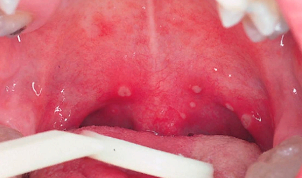 Далеко не всегда вирус проявляется на губах. Он может высыпать на коже вокруг рта. Или на слизистой оболочке ротовой полости. Болезненные прыщики зудят и очень долго проходят, а при надавливании или попадании на них горячей еды, очень болят. Еще одной излюбленной локацией простого герпеса являются десна. Начальная стадия очень похожа на стоматит, слизистая воспаляется, на ней появляются небольшие белые горошинки, и только потом клиническая картина становится ясной. Вышеописанный тип герпеса принято относить к первому типу, в медицине его называют HSV-1.