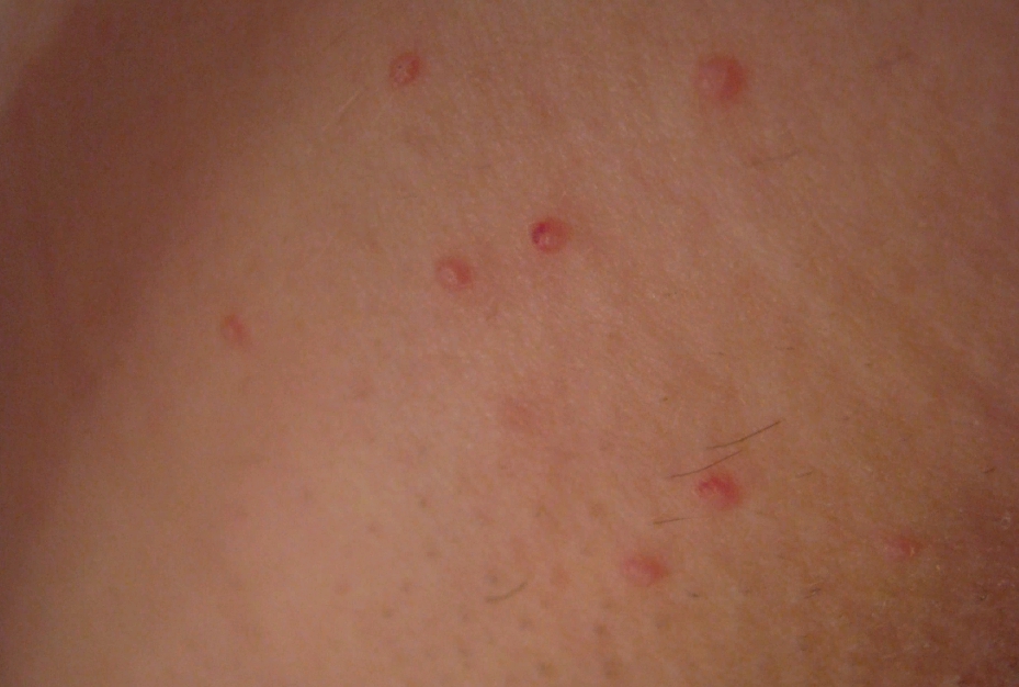 - Вторая стадия периодического зуда кожи и высыпание пузырьков. У мужчин эта стадия более болезненна, так как кожа покрыта волосяным покровом и при расчесывание повреждается еще и волосяной фолликул. Элементарная утренняя процедура по удалению щетины становится очень неприятной;