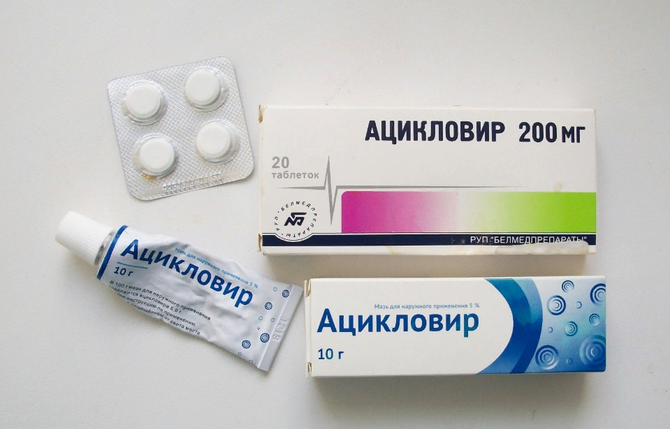Чаще всего врачи назначают для лечения герпеса первого и второго типа Ацикловир. Это средство продается в форме таблеток и мази. Препарат интересен тем, что его применяют при герпесе и в той, и в другой форме одновременно. Мазь устраняет набухшие пузырьки и помогает им поскорее лопнуть, а таблетки убивают вирус изнутри.