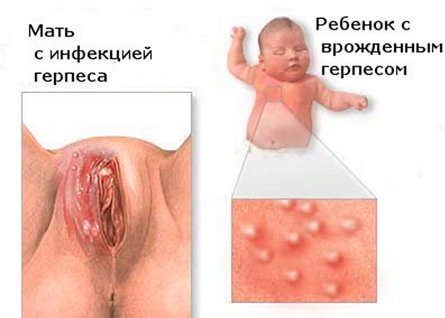 Беременность — это особый период, в который не желательно употреблять лекарственный препараты на основе химии, а также многих растительных средств. Если герпес проявил себя в первом и втором триместре беременности, это не страшно и его можно вылечить. С последними месяцами дело обстоит гораздо сложнее, особенно, если это касается генитального герпеса. При прохождении ребенка через родовые пути герпетическая инфекция может попасть на ребенка и тогда ему достанется весь неприятный букет, который будет сопровождать его в течение всей жизни.