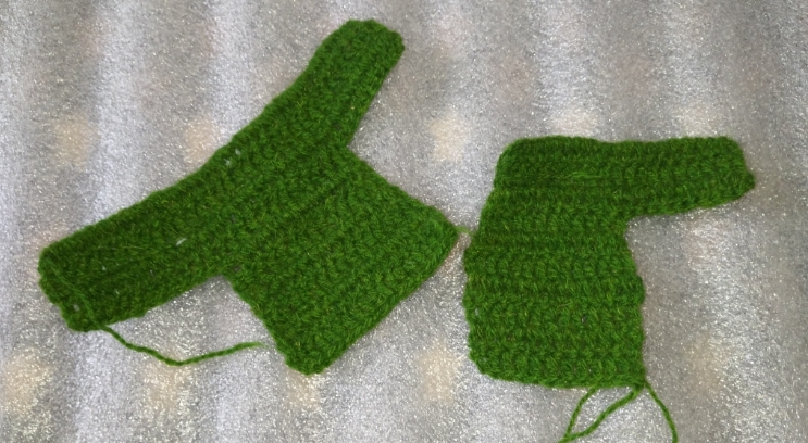 Вторая полочка формируется так же. Если вы хотите получить свитер, вырез для горловины делать не нужно.