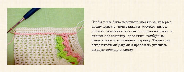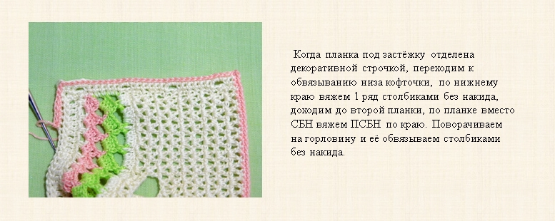 Кофточку можно украсить атласными лентами, бусинами или другим декором.
