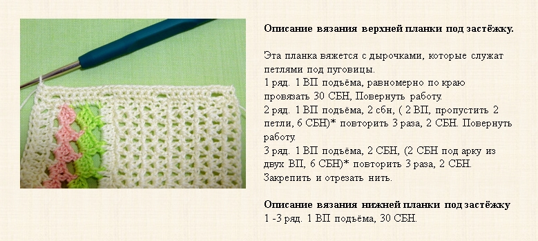 Набрать необходимое количество воздуш. петель — разделить на два количество петель для спинки, вязать столб. с нак., всего 3.