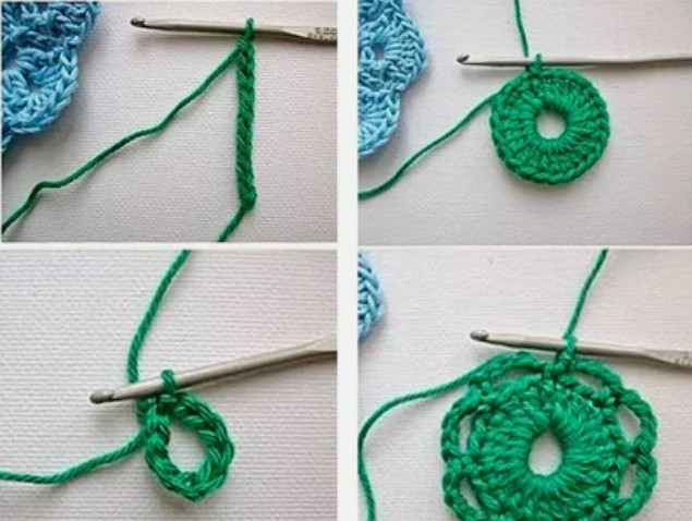 Создать такую красоту, как вязаный цветок, сможет даже начинающая мастерица, используя на первых порах простые схемы. Много времени работа не занимает, на один цветок уходит не более 15 минут. Возможно, на первое свое изделие вы затратите больше времени, но, набив руку, сможете их вязать в больших количествах. Начало вязки — круг, состоящий из воздушных петель, это середина цветка.