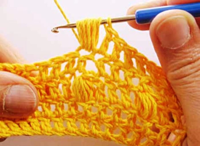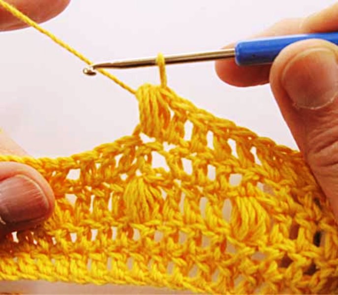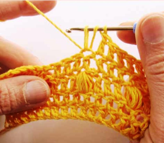 Для того, чтобы получить такой узор, несколько полустолбцов с накидом связывают в одну петлю, то есть мы получаем полустолбцы с общим одним основанием, одной общей вершиной. Чем больше используют таких полустолбиков, тем пышнее, рельефнее будет выглядеть узор.