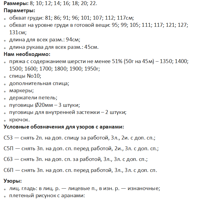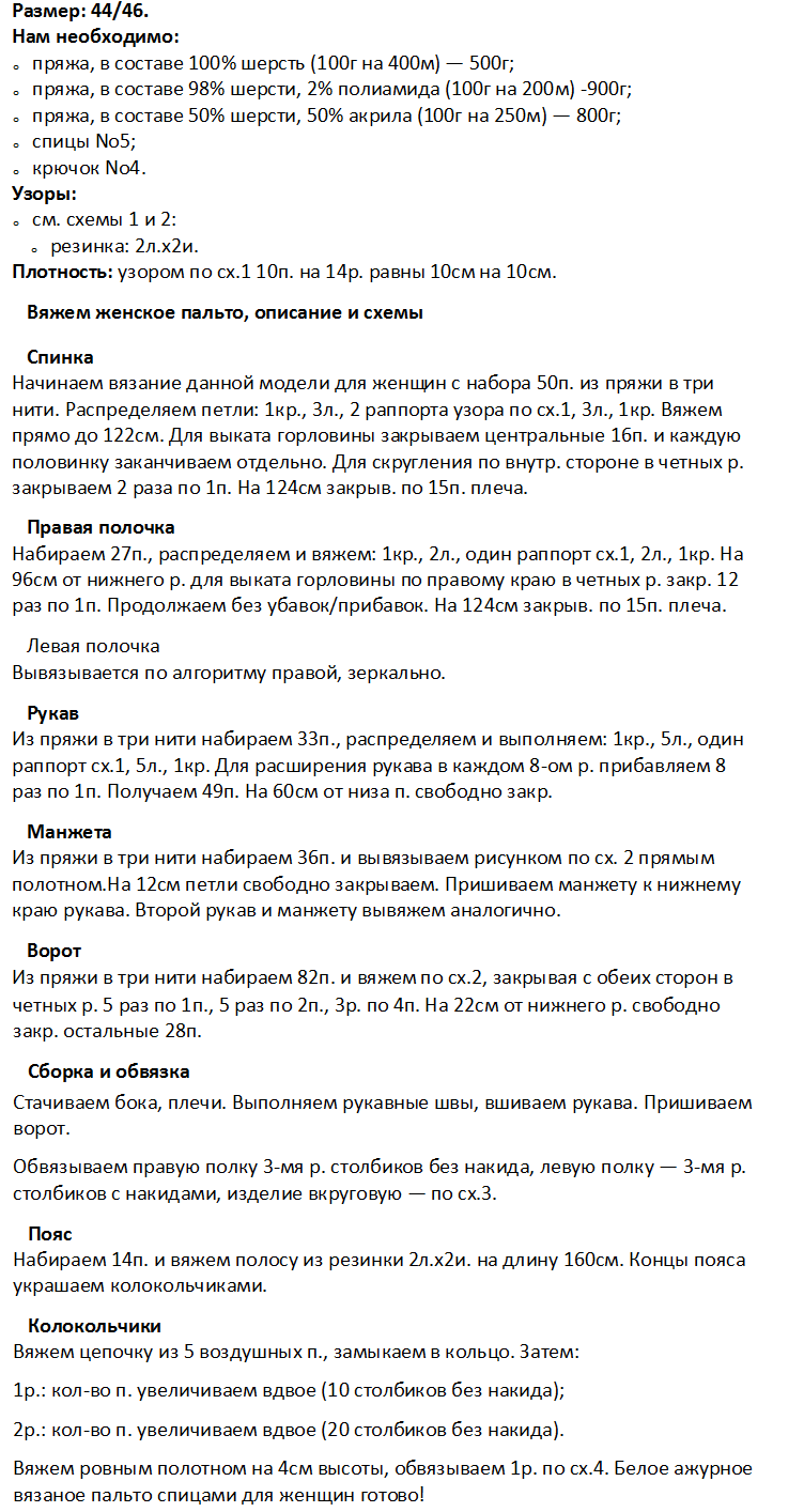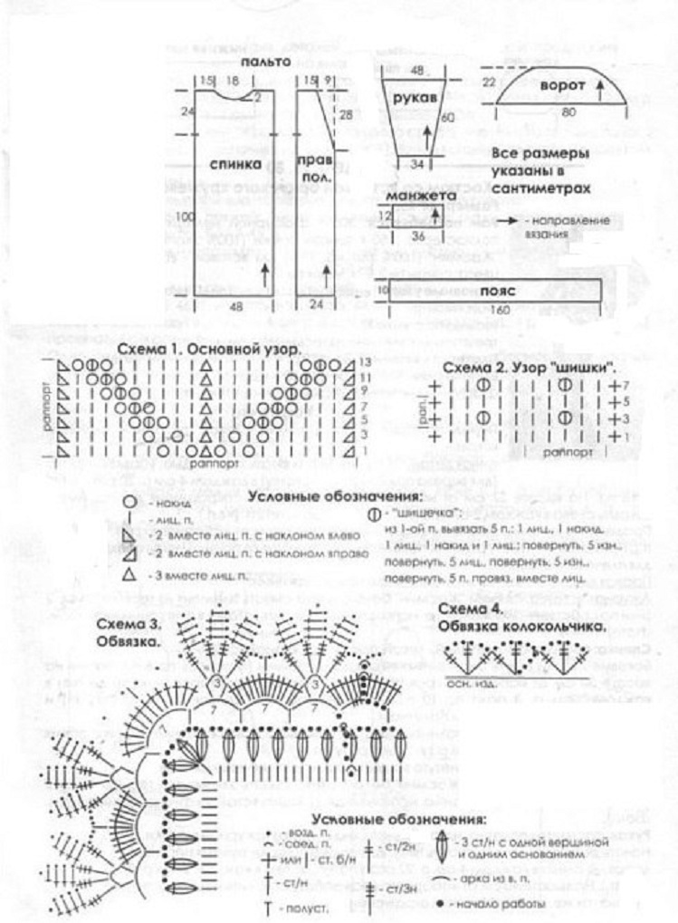 Стильное и очень теплое пальтишко, вяжется из плотной и толстенькой нитки. Декорировано ажурной вязкой. В описании размеры от 8-го до 22-го, для полненьких дам. Данный вид вязаного пальто вытягивает силуэт, придает фигуре стройности и особого шарма женщине.