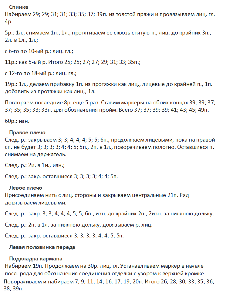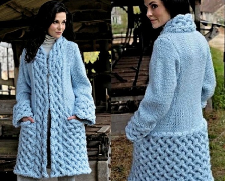 Полная технология вязки и сборки теплых пальто описана в видео ролике. Такой вид вязки подойдет для тех, кто только учится вязать. Обычная вязка без узора, простые детали, легкие крой, помогут быстро справиться с работой. В процессе работы навряд ли возникнут какие-то вопросы, все просто и понятно.