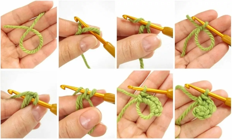 Начинается вязание с кольца амигурами, оно позволяет затянуть край, не зашивая: