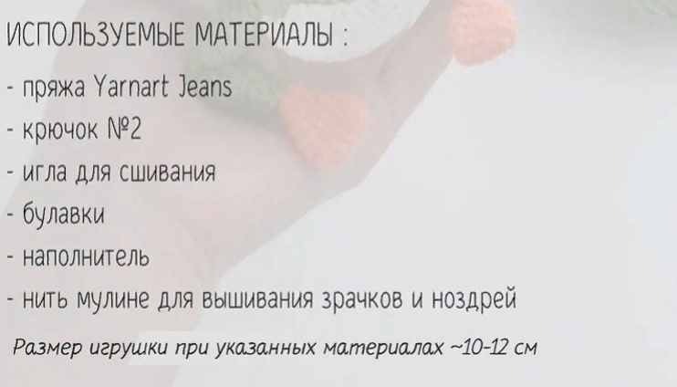 Размер готовой игрушки зависит от плотности вязания. Высота зайца при использовании заявленных материалов составит от 16 до 18 сантиметров.