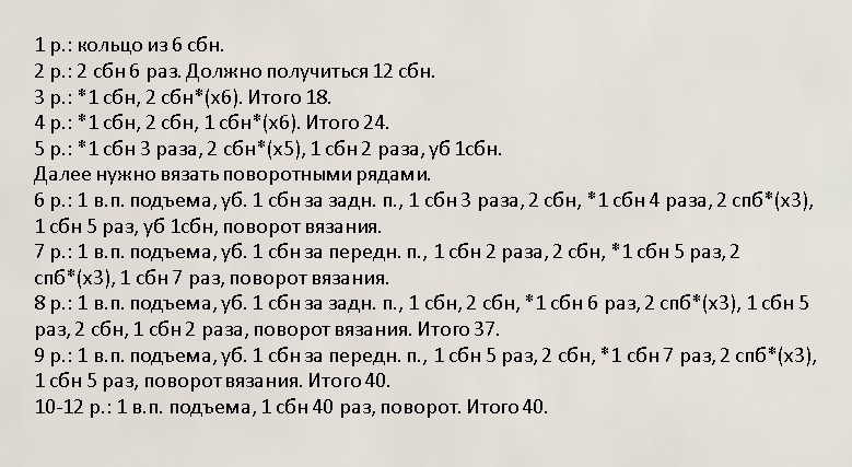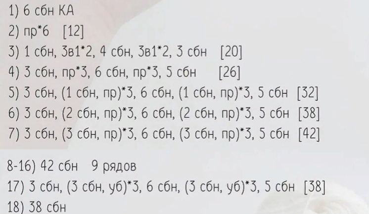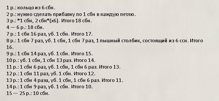 Кольцо состоит из 6 столбиков без накида, после чего начинается вязание по кругу.