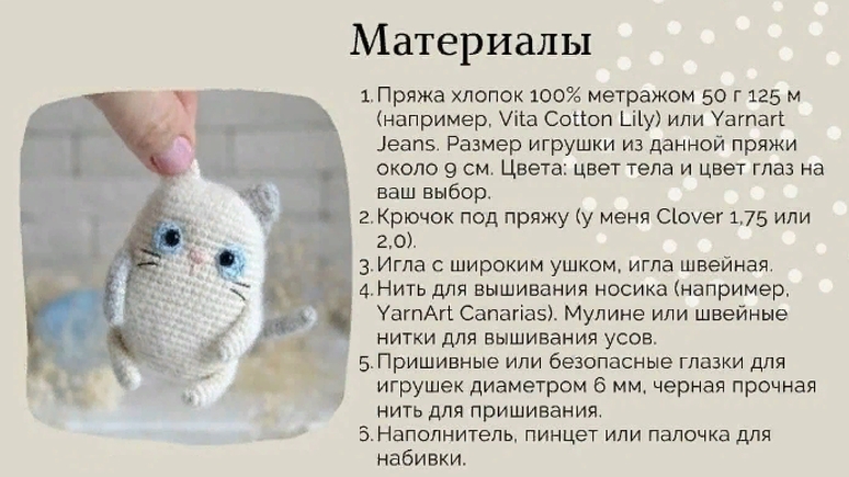 Котик маленького размера, связанный из хлопковых ниток, станет любимой игрушкой даже для самых маленьких детей. Процесс его изготовления не сложный и займет минимум времени.