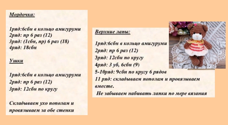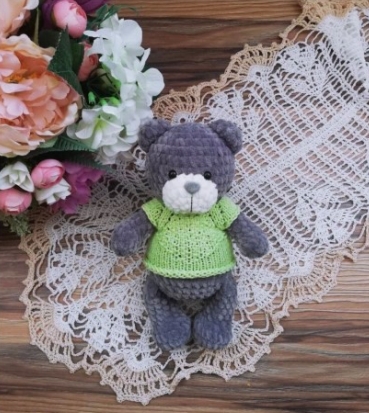 Еще одна игрушка, которую мы предлагаем связать в стилистике амигурами — мишка. Он может быть как мальчиком так и девочкой, в зависимости от этого, отдельно можно связать платьице или штанишки с рубашкой.