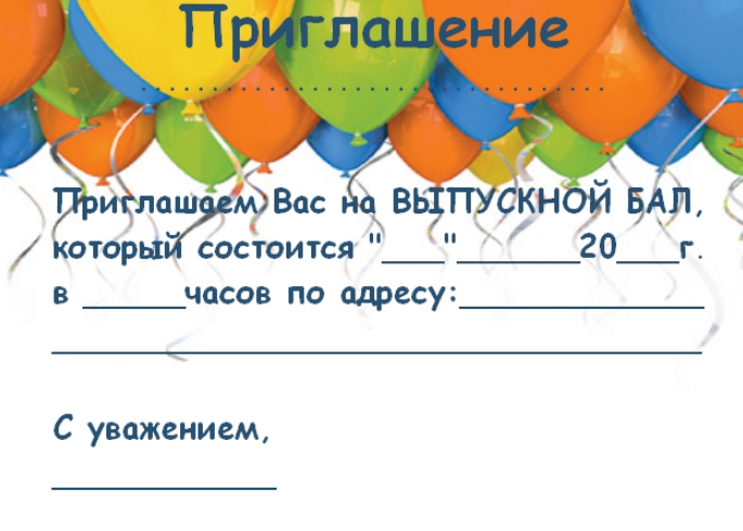шаблоны пригласительных на выпускной