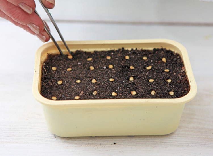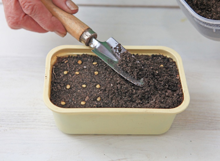 Проросший семенной материал раскладывается поверх подготовленной почвы на расстоянии 1,5-2 см, не гуще. Поверх очень аккуратно насыпается тонкий слой грунта. Придавливать его не стоит, можно повредить ростки. Полив проводят дождеванием в очень умеренном количестве. Следите чтобы грунт не просел и ростки не оголились. Чтобы они хорошо принялись и укоренились, накройте емкость с высаженными семенами прозрачным полиэтиленом.
