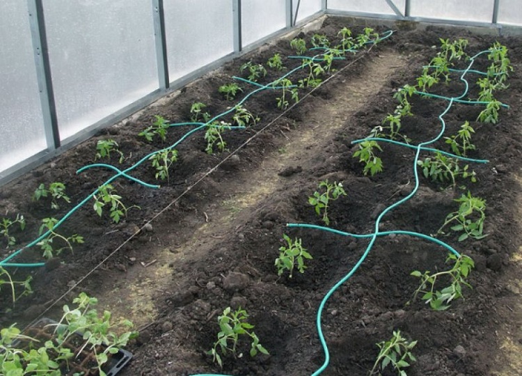 Когда ямки с растениями подсыпаны грунтом после полной усадки в результате поливания, проводят мульчирование. Как правило, применяют для этого торфяную смесь. В самую последнюю очередь проводят подвязку высаженных кустов к потолочным опорам теплицы.