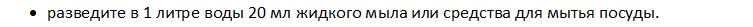 Опрыскивание проводится в два этапа, сначала приготовленным раствором, спустя часа 2 обычной водой. Процедура повторяется через два дня.