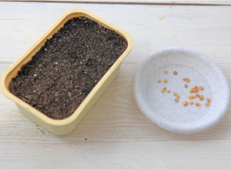 Прежде чем приступать к посеву, нужно обеззаразить почву. Для этого используют готовые растворы или проливают разведенной марганцовкой. Пока проклюнется семенной материал, пролитая почва просохнет.