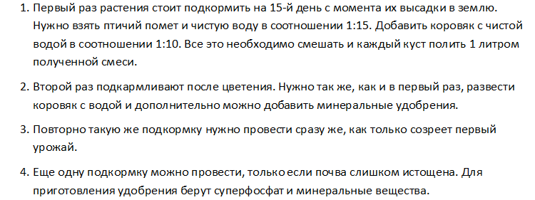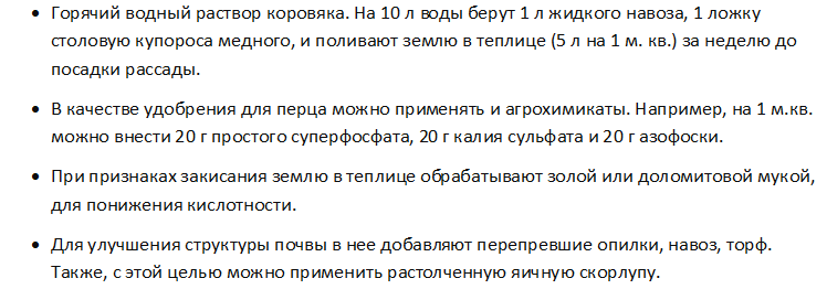Перед тем как высадить саженцы для дальнейшего роста и плодоношения в тепличные условия, проводят предварительное удобрение грунта. Для этого могут использоваться: