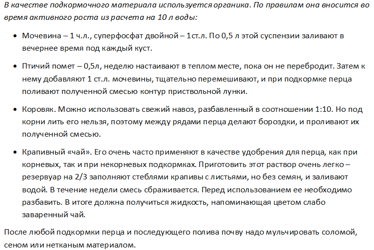 До того, как придет время высаживать перцы в теплицу, нужно провести подкормку растений не менее двух раз.