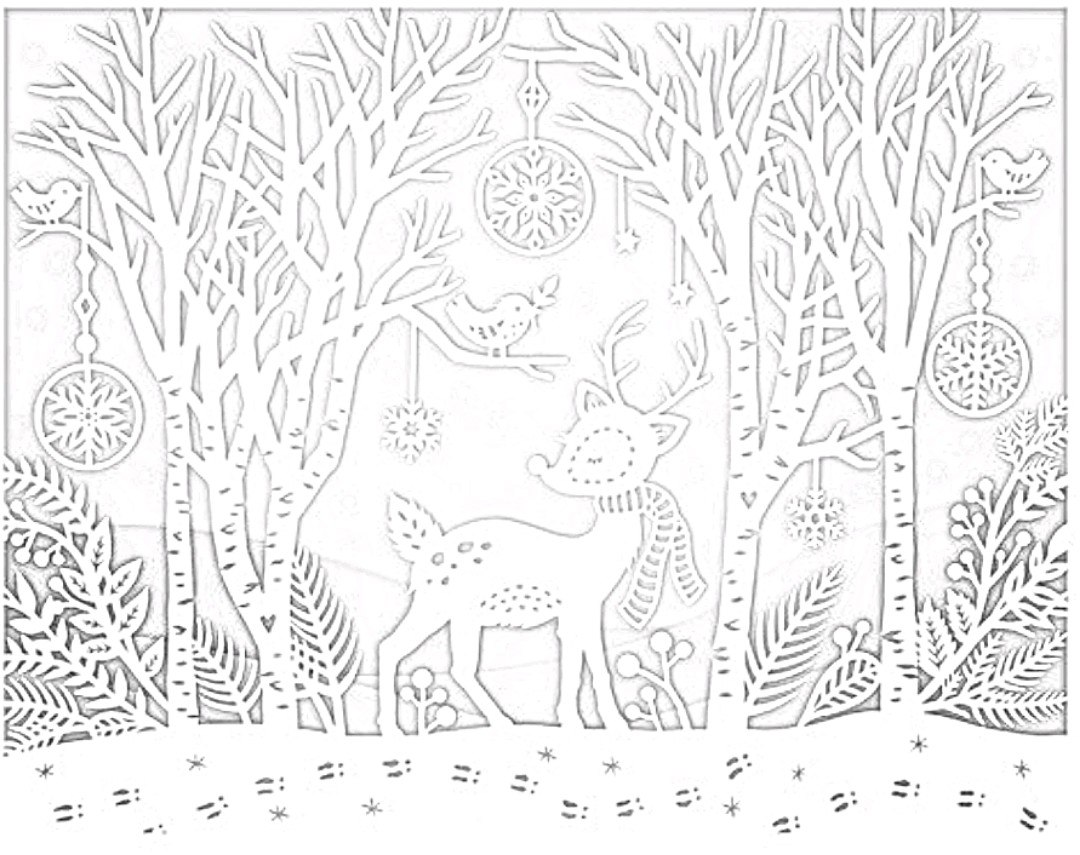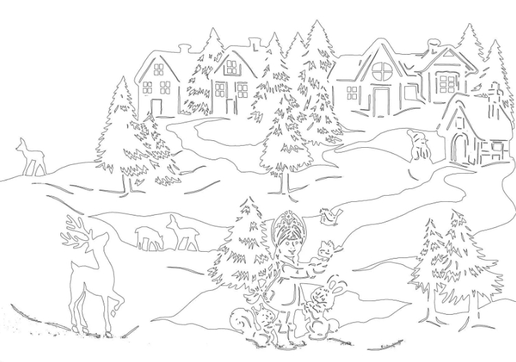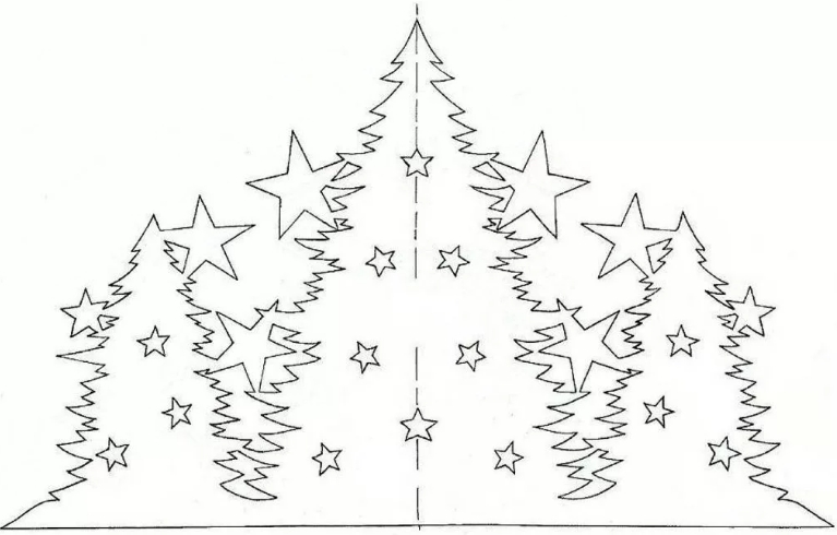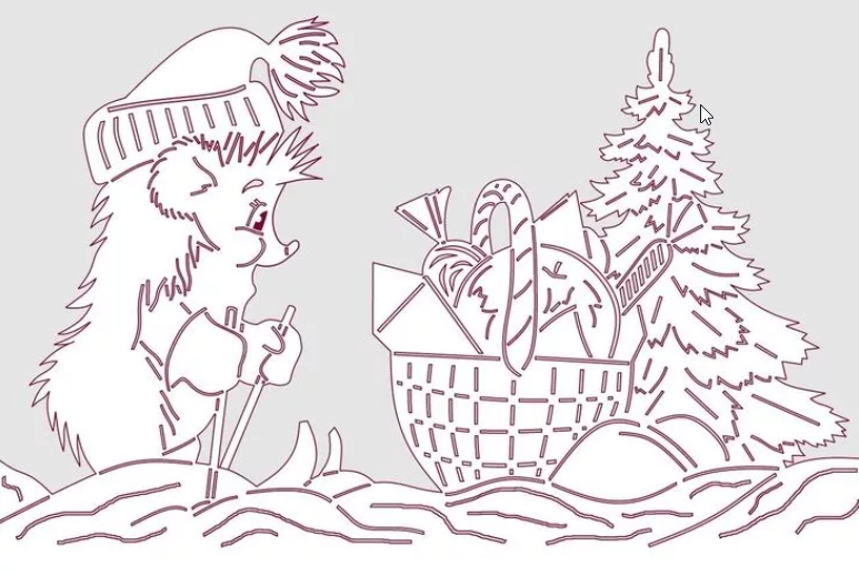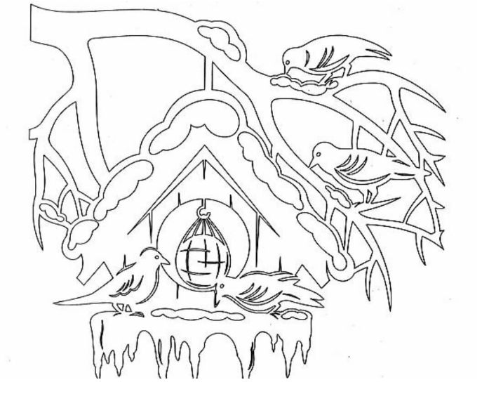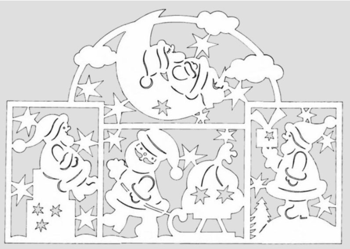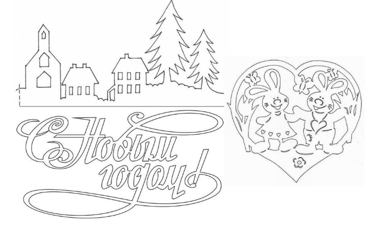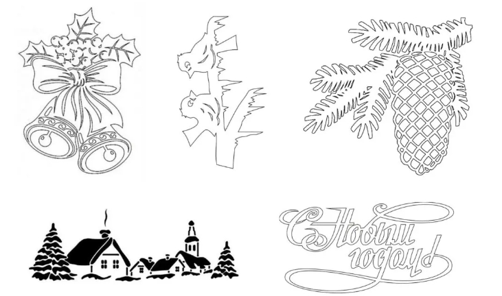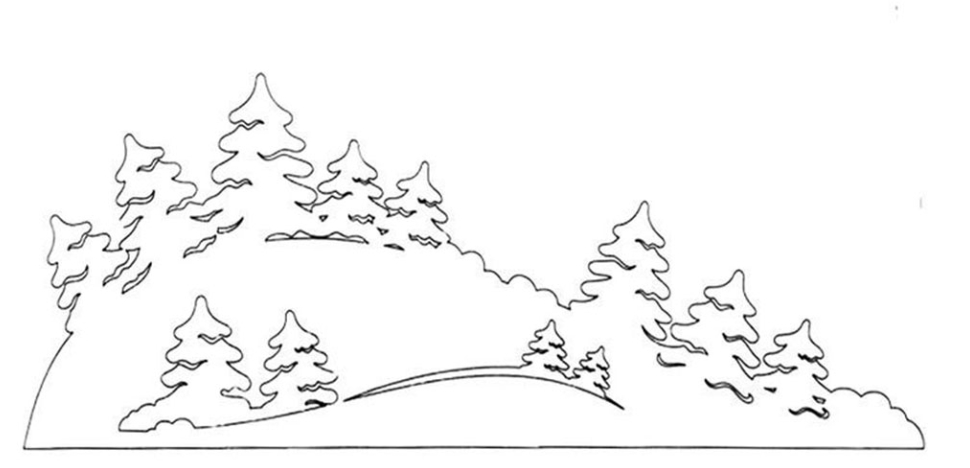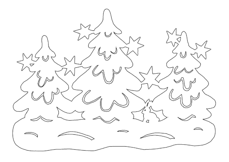 Разнообразные пейзажи, заснеженные косогоры, деревья, тоже можно использовать в качестве вытынанок.
