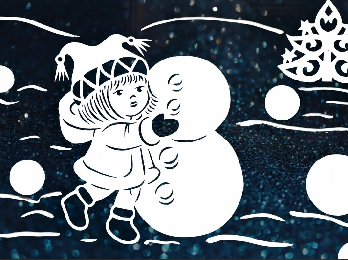 Все мальчишки и девчонки, как только выпадает много снега, бегут на улицу, чтобы скатать из него большие шары сделать Снежную бабу или Снеговика. Это еще одни персонажи, подходящие для украшения окон.