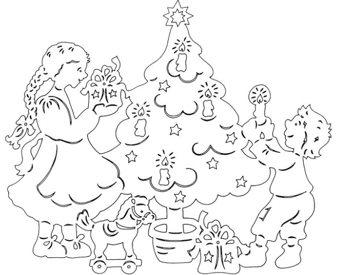 На самый главный праздник в году принято украшать елочку, вырезанная из бумаги и наклеенная на окно она будет очень даже к месту.