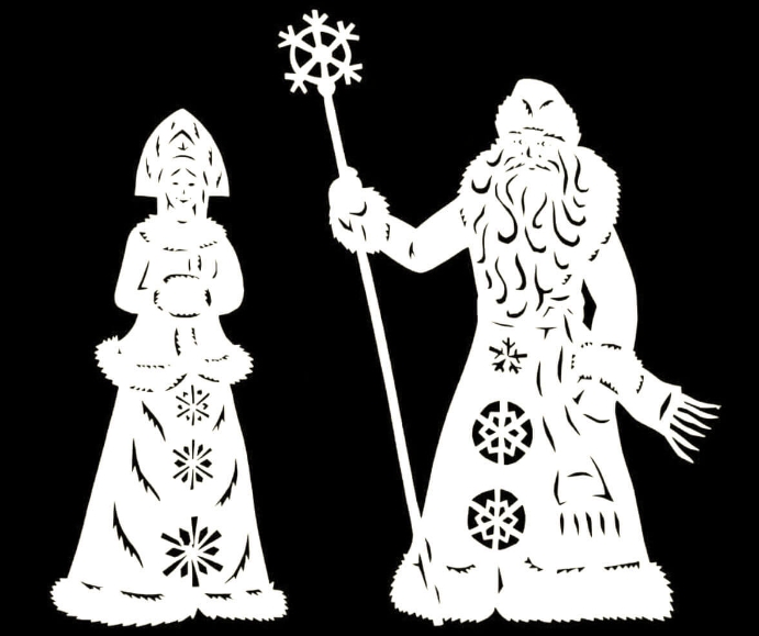 Вытынанками называют один из видов народного искусства, особую технику вырезания ажурных узоров, фигур, композиций из бумаги и других тонких материалов. Их наклеивают на разные поверхности, например, на окна и зеркала. Шаблоны вытынанок являются отличным украшением ко многим праздникам, а особенно к Новому году и способствуют созданию сказочного настроения. В качестве клеящего вещества используют простое мыло, разведенное в воде. Для работы подойдут канцелярский нож или резак и маникюрные ножницы, чтобы аккуратно вырезать мелкие детали.