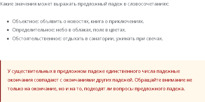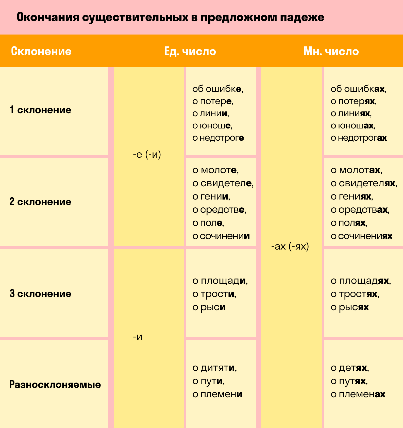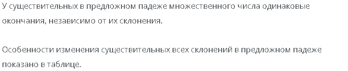 таблица окончание существительных в предложном падеже: единственное и множественное число