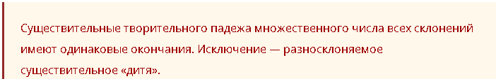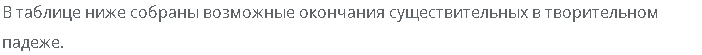 таблица окончание существительных в творительном падеже: единственное и множественное число